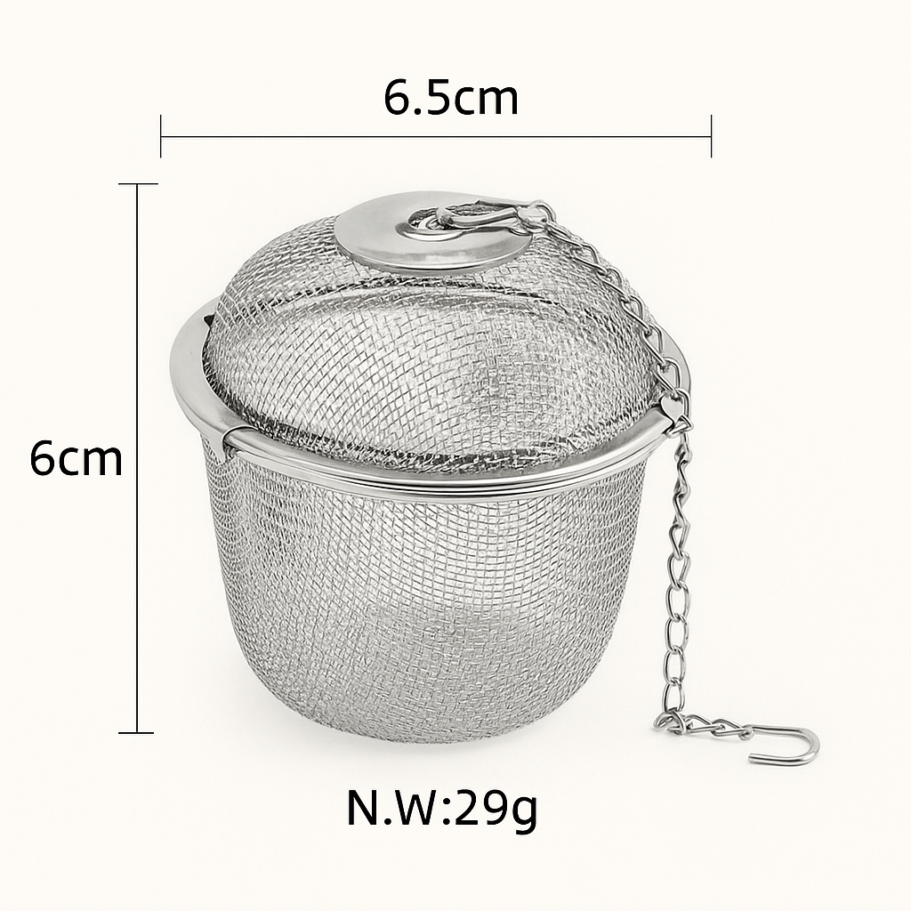 Den praktiska kedjan med krok gör det enkelt att fästa tesilen på koppens eller kannans kant, och gör hanteringen smidig även när tesilen ska lyftas ur. Locket säkerställer att tebladen hålls på plats under hela bryggningen.